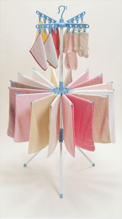 タオルや小物がコンパクトに干せる、2段パラソル型の室内物干し。