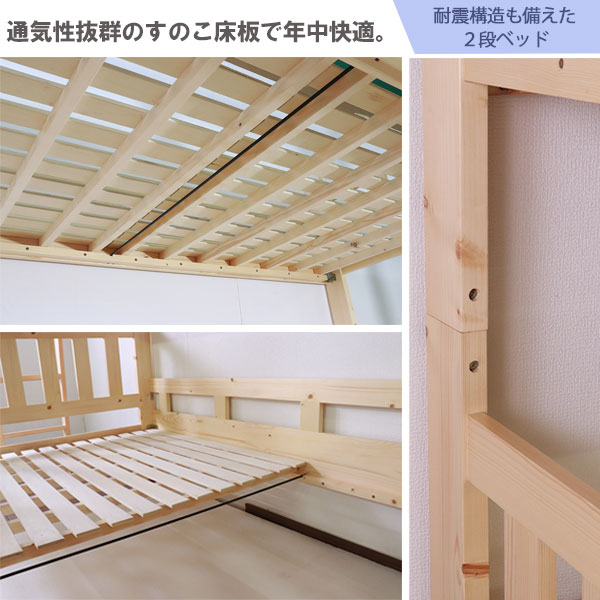 二段ベッド 北欧パイン パイン材 木製 2段ベッド 耐震 ベッド シングルベッド コンパクト スノコ 安い 分離 分割 シングル シンプル はしご 子供(1909B15-2)